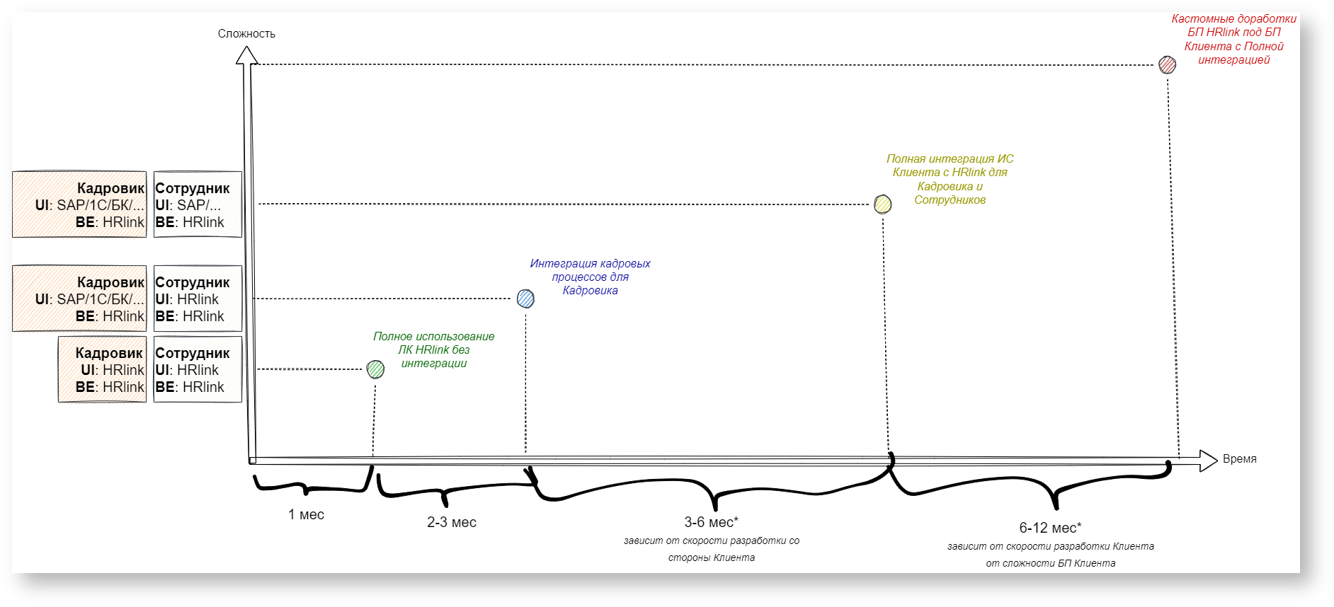 Рекомендация для клиентов - на пилот начать без интеграции, после успешного пилота - использовать базовую интеграцию с ИС Клиента для Кадровиков.